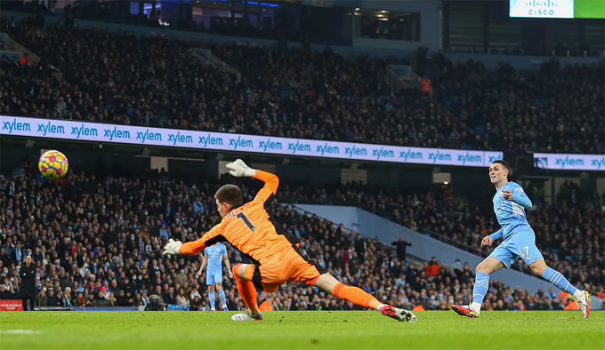 Bàn thắng của Foden cũng mở ra một bữa tiệc bàn thắng trên sân Etihad, khi chỉ 6 phút sau tiền vệ đắt giá nhất lịch sử đội bóng - Jack Grealish băng vào đánh đầu dũng mãnh sau tình huống tạt bóng rất cuộn của Riyad Mahrez. Có hai bàn thắng sớm, Man City tiếp tục kiểm soát hoàn toàn trận đấu và có thêm một bàn thắng trước khi bước vào giờ nghỉ với pha bóng mà nhạc trưởng Kevin de Bruyne đã băng lên rất nhanh rồi dứt điểm gọn gàng ở góc hẹp.