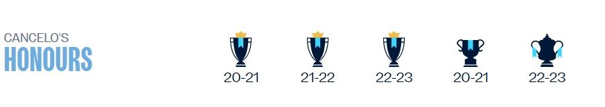 Tuy nhiên, phía Man City chỉ công nhận Cancelo giành hai danh hiệu mùa 2022/2023. Theo đó, trang chủ của Man City vừa tiến hành cập nhật dữ liệu danh hiệu ở mùa 2022/23 cho mọi thành viên đội một, và ngoại trừ Joao Cancelo, mọi cầu thủ còn lại đều được vinh danh là nhà vô địch Champions League.