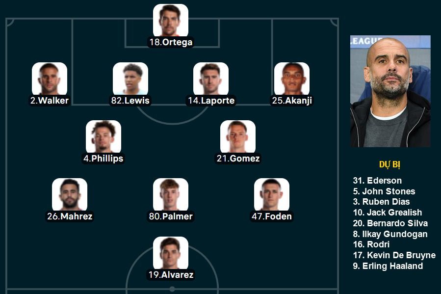 Chi tiết hơn, 9 cầu thủ thường đá chính được HLV người Tây Ban Nha cất trên băng ghế dự bị là Ederson, Stones, Dias, Grealish, Rodri, Bernardo Silva, Gundogan, De Bruyne và Haaland.