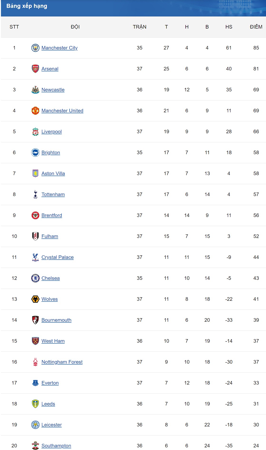 Bên cạnh đó, những cái tên như Jack Grealish, Ederson và Rodri luôn thi đấu ổn định, duy trì được sức mạnh và tính cân bằng cho đoàn quân áo xanh xuyên suốt mùa giải.