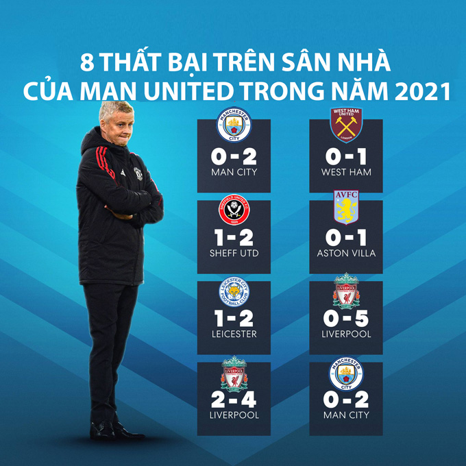 Đây là lần đầu tiên kể từ năm 1989, MU để thua 8 trận liền nhau tại Old Trafford (chỉ tính trong 1 năm dương lịch).