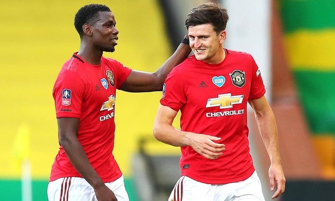 Maguire (phải) đưa Man Utd vào bán kết. Ảnh: PA.