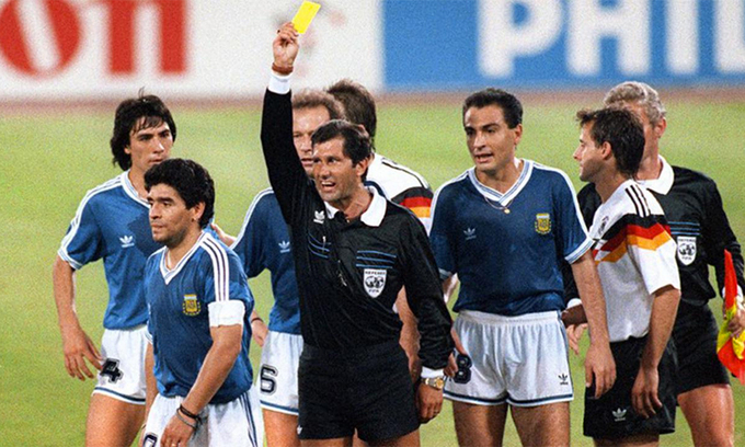 Maradona là thủ lĩnh của Argentina tại World Cup 1990 - giải đấu mà đội tuyển xứ Tango vào chung kết bằng lối đá phòng ngự. Ở trận chung kết với Đức, Pedro Monzon nhận thẻ đỏ ở phút 65 sau pha phạm lỗi với Jurgen Klinsmann. Đó cũng là chiếc thẻ đỏ đầu tiên trong một trận chung kết World Cup. Đến phút 87, ông Codesal đuổi tiếp Gustavo Dezotti. Sau tấm thẻ đỏ thứ hai của Argentina, Maradona phản ứng dữ dội và phải nhận thẻ vàng.