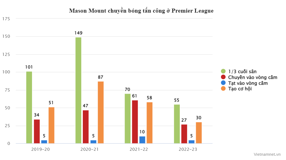 Từ một ngôi sao, Mason Mount bị mất vị trí trong mùa giải vừa qua. Bên cạnh đó, sự bất ổn của Chelsea khiến anh không muốn gia hạn hợp đồng, dẫn đến cuộc chia tay trước khi hết hạn vào năm sau.