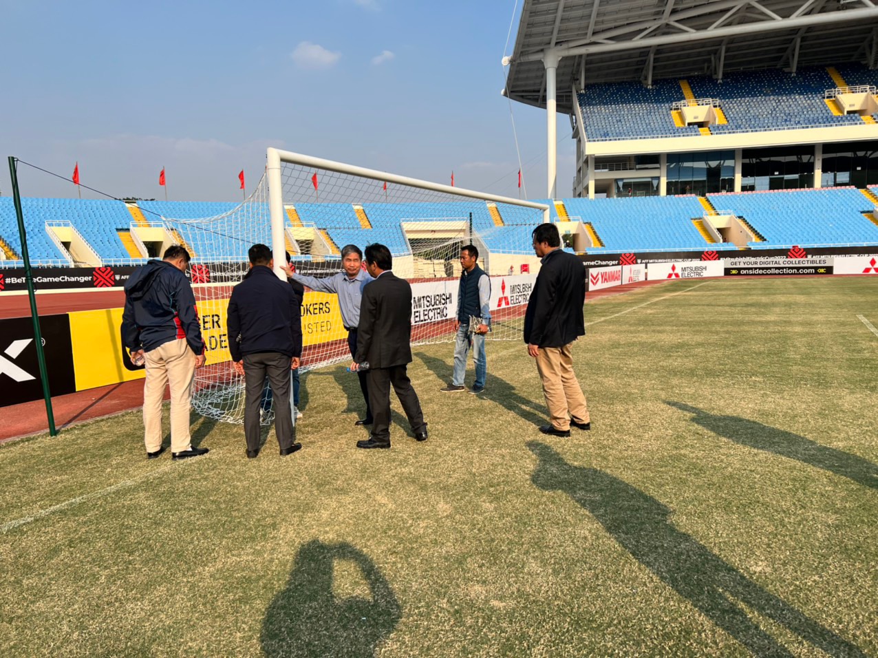 Nhắc lại, sân Mỹ Đình xảy ra sự cố xà ngang bung ở cuối trận Việt Nam thắng CLB Dortmund. Khu kỹ thuật bị gió thổi đổ nhiều lần. Mặt sân bị chê có nhiều chỗ có cỏ úa vàng. Nhà vệ sinh cũng bị đánh giá chưa tốt…