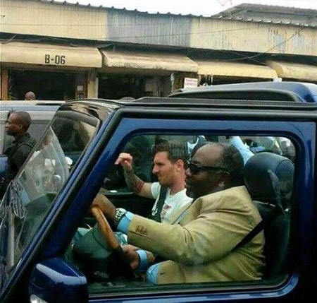 Siêu sao người Argentina đến theo lời mời của Tổng thống Gabon, Ali Bongo. Việc người đứng đầu đất nước này đích thân đi đón và làm... tài xế cho Messi, chứng tỏ sự tôn trọng cũng như mức độ nồng nhiệt của ông và người dân nơi đây.