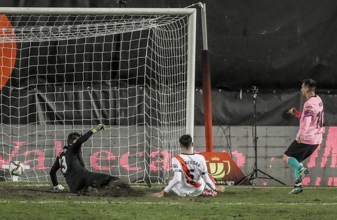 Phút 70, sau khi thoát xuống cánh trái, Griezmann tạt dọn cỗ cho Messi đệm bóng gỡ hòa 1-1. Đây là bàn thứ 18 của Messi trong 11 trận gặp Rayo Vallecano.