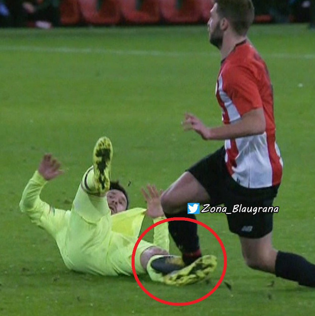 Cụ thể trong một pha tranh chấp 50-50, trung vệ Yeray Alvarez của Bilbao đã chủ động nhoài người cản phá trước Messi. Thế nhưng tiền đạo người Argentina vẫn lao đến kê bóng rồi giẫm thẳng vào chân của đối thủ.