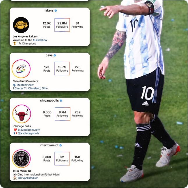 Ngày 7/6, thời điểm Messi thông báo quyết định, tài khoản Instagram của Inter Miami mới chỉ có khoảng 900.000 người theo dõi. Chỉ trong 24 tiếng, con số đó đã lên tới 4,5 triệu.