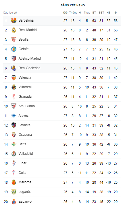 Với kết quả này, Barca đã có 58 điểm và tạm soán ngôi đầu của Real Madrid. Còn riêng cá nhân Messi, anh đã có 19 bàn tại La Liga mùa này, hơn 6 bàn so với người xếp sau là Karim Benzema trong cuộc đua Vua phá lưới.