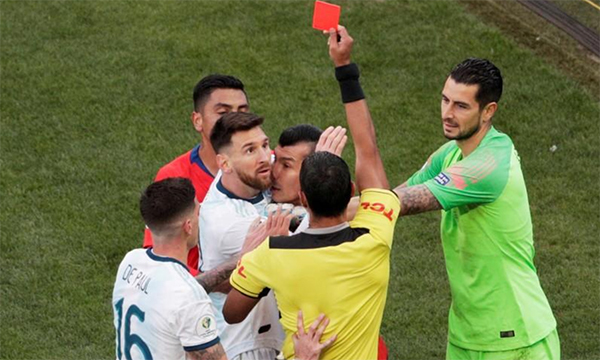 Messi không chơi trận quốc tế nào sau lần bị đuổi khỏi sân trong trận tranh HC đồng Copa America mà Argentina thắng Chile hôm 7/7.