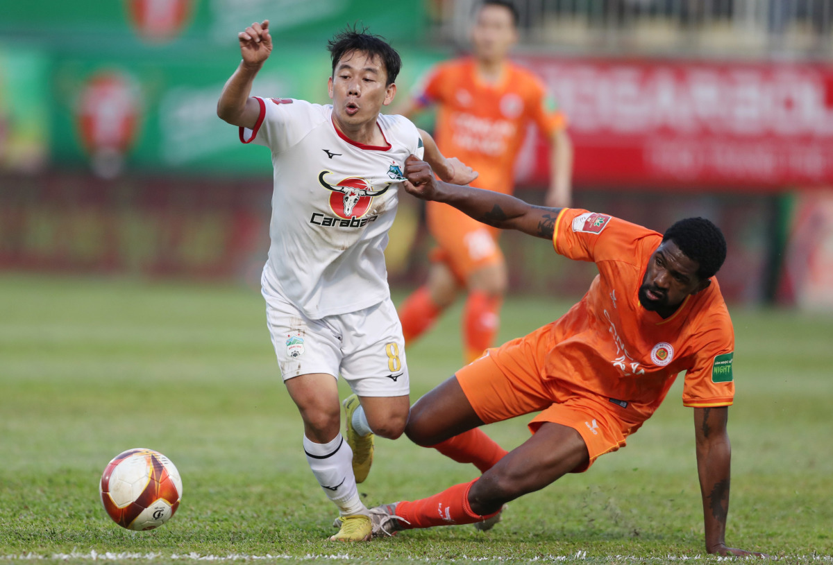 Phút 41, Minh Vương va chạm mạnh với trung vệ Almada Monteiro Elton trước rìa vòng cấm và bị đau. Dù vậy, tiền vệ của HAGL vẫn cố gắng chuyền cho đồng đội tạo nên cơ hội nguy hiểm và được phạt góc.
