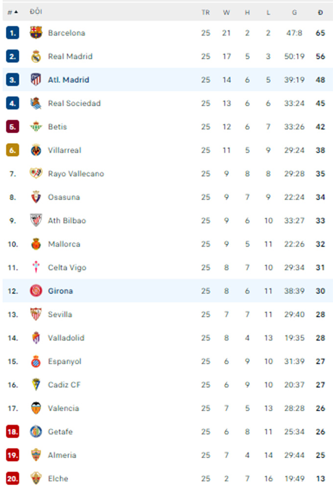Đánh bại Girona theo cách nghẹt thở, Atletico đã nâng chuỗi trận bất bại liên tiếp của họ lên con số 7 (thắng 5). Ở những trận đấu này, có đến 5 lần đại diện thủ đô Tây Ban Nha giữ sạch lưới. Sau 25 vòng, Atletico kiếm được 48 điểm trong khi con số này với Girona chỉ là 30.