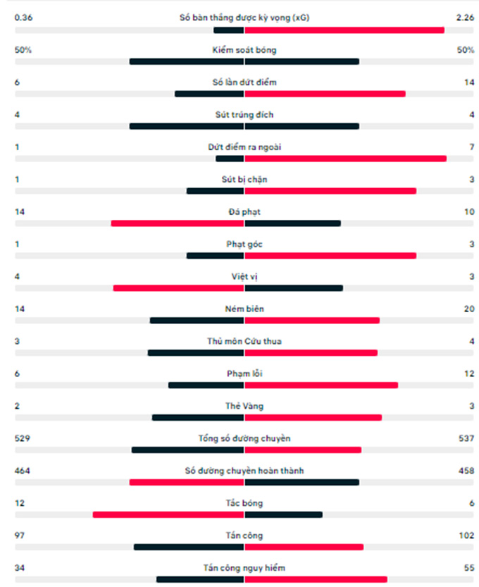 Tuy để đối phương dồn ép, nhưng Girona cũng cho thấy họ thực sự nguy hiểm khi tổ chức phản công. Thống kê cho thấy, cả trận họ tung ra tới 4 cú dứt điểm trúng đích. Đây là thành tích tương đương với những gì mà Atletico làm được.
