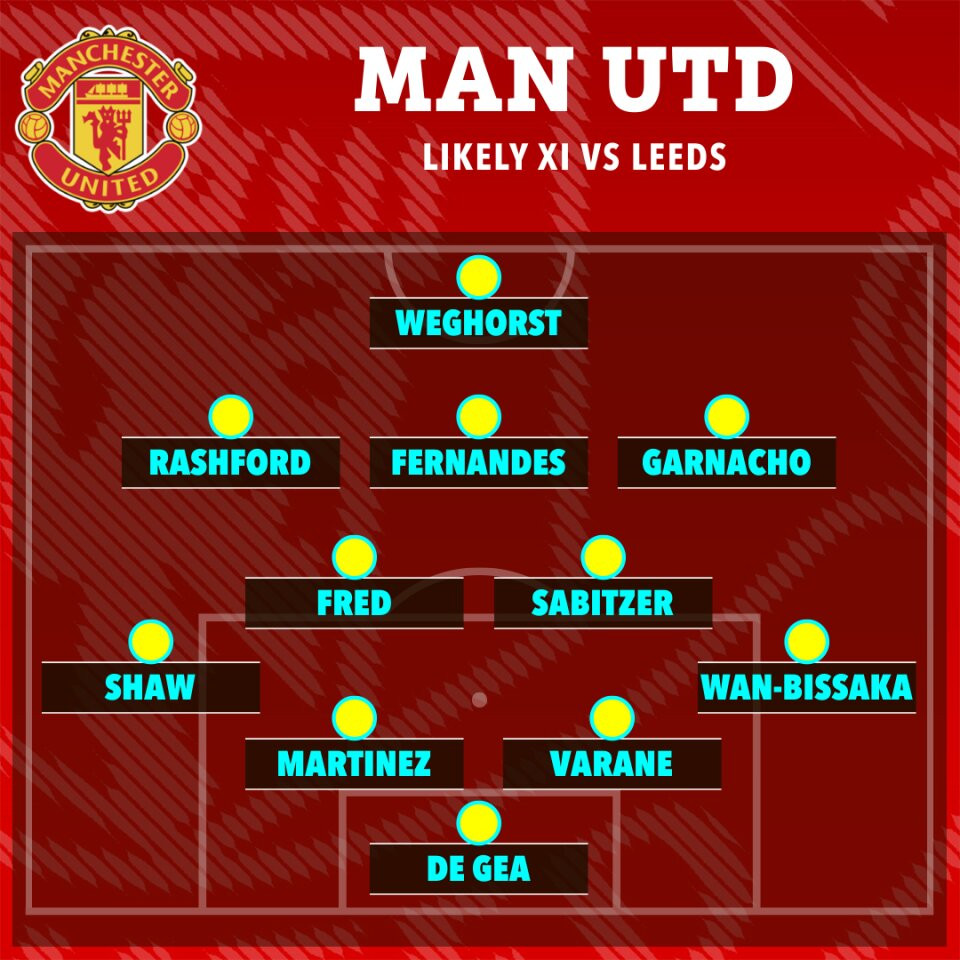 Theo báo Anh, nhiều khả năng tân binh Marcel Sabitzer sẽ lần đầu đá chính trên hàng tiền vệ, bên cạnh Fred và Bruno Fernandes.