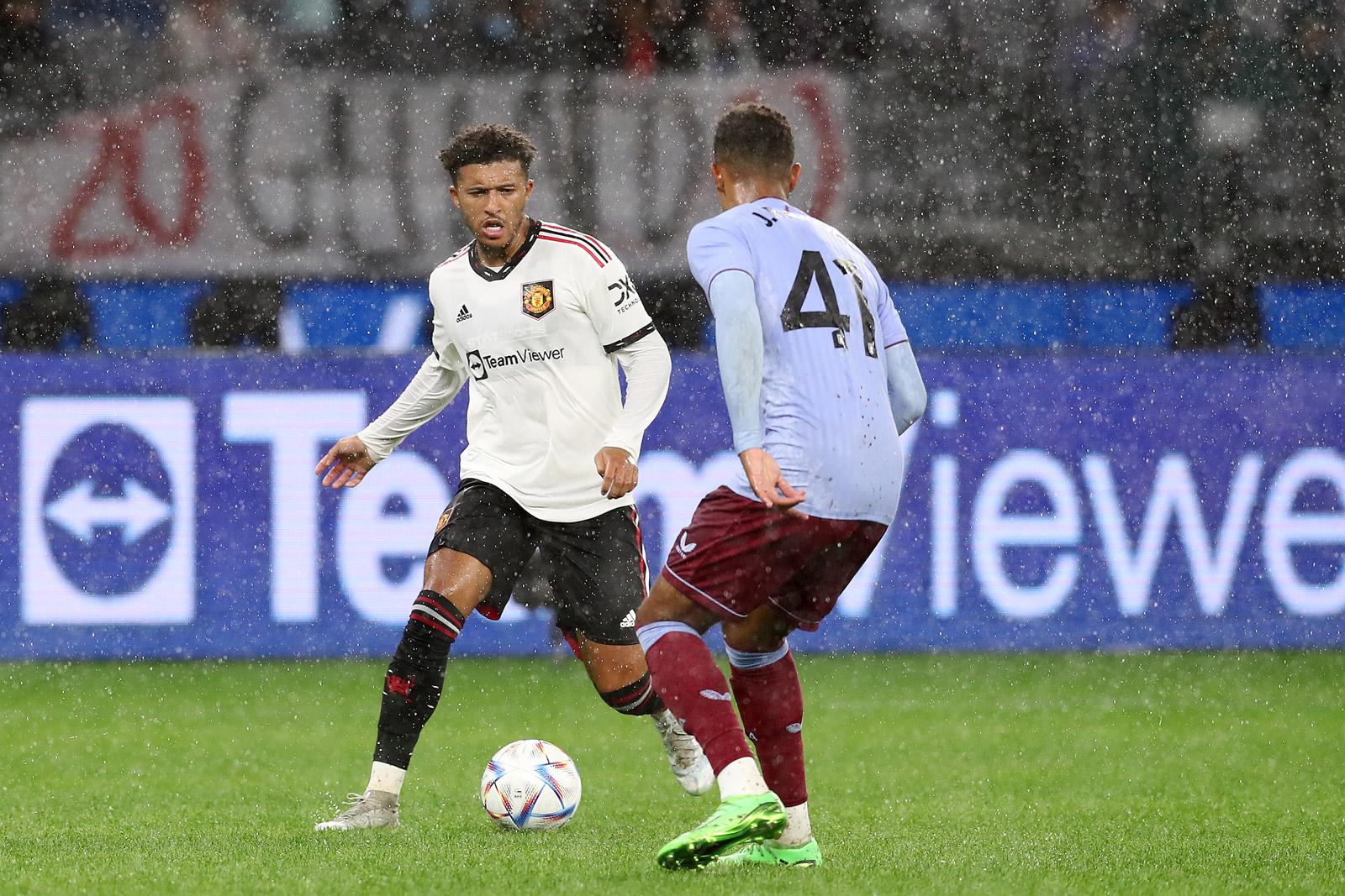 Pha nâng tỷ số lên 2-0 của MU cũng có dấu ấn Sancho. Anh bó vào giữa như một tiền đạo để chờ phản công, đón đường chuyền vượt tuyến từ sân nhà rồi bứt tốc và kiến tạo để Rashford dứt điểm. Pha phản công mẫu mực ấy được tính là Matty Cash phản lưới nhà.