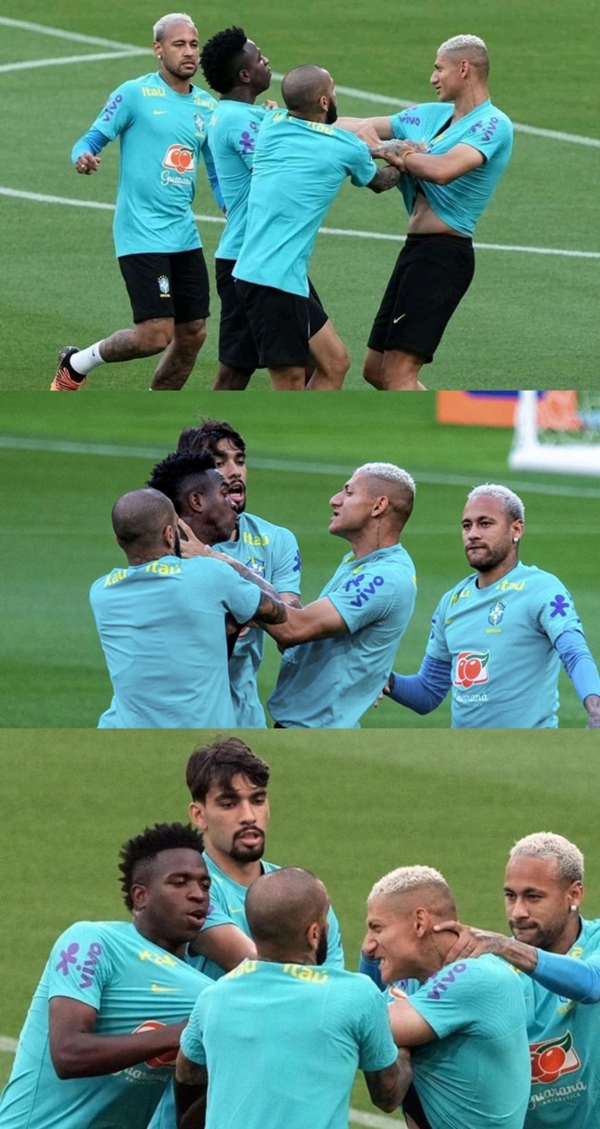 Vinicius và Richarlison đã mất bình tĩnh trên sân tập khi cùng ĐT Brazil chuẩn bị cho trận giao hữu với ĐT Nhật Bản. Richarlison nắm áo của Vinicius và gương mặt của cả hai đều tỏ ra rất hung dữ. Các đàn anh ở ĐT Brazil đã phải lao vào can thiệp để ngăn sự việc đi quá xa.