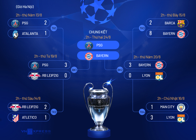 * Bayern - PSG: 2h thứ Hai 24/8, giờ Hà Nội.