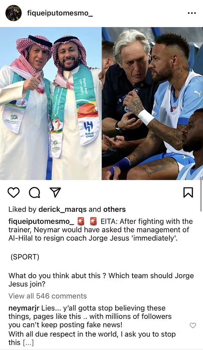 Tờ The National của Saudi Arabia thậm chí khẳng định ban lãnh đạo Al Hilal đã lên tiếng cảnh báo Neymar về ứng xử của anh sau sự cố với Jorge Jesus. Họ nhấn mạnh nếu Neymar đòi ông này bị sa thải thì chính anh sẽ bị tống cổ trước.