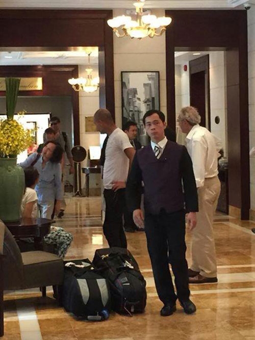 | Gia đình Pep check -in ở khách sạn Metropole - ảnh do BTV Quang Việt của ThethaoTV cung cấp |