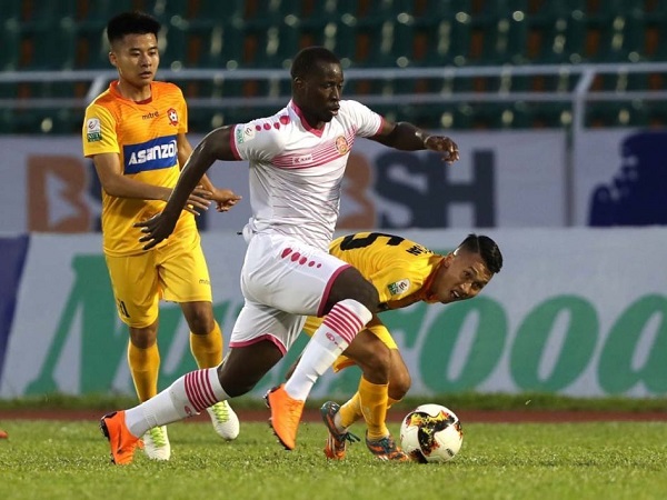 Trận đấu giữa Hải Phòng - Sài Gòn thuộc vòng 19 V.League 2018 trên SVĐ Lạch Tray đã diễn ra vô cùng hấp dẫn. Phút 14, Jermie Lynch tung cú sút như "búa bổ" từ ngoài vòng cấm, tiếc là bóng lại chạm xà và đi ra ngoài.