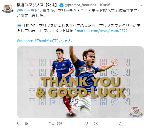 Theerathon Bunmathan, hậu vệ trái xuất sắc nhất Đông Nam Á hiện tại, đã không đạt được thỏa thuận gia hạn hợp đồng với nhà cựu vô địch Nhật Bản là Yokohama F. Marinos. Anh rời đi sau những năm tháng cống hiến và giành vinh quang với chức vô địch J.League 2019.