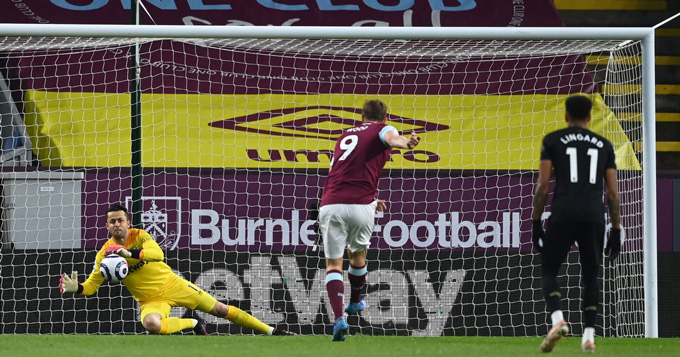 Tuy nhiên ít phút sau Burnley bất ngờ được hưởng 11m sau tình huống phạm lỗi trong vòng cấm của Tomas Soucek với Anthony Taylor. Trên chấm phạt đền, Chris Wood không mắc sai lầm nào mở tỉ số cho Burnley ở phút 19.