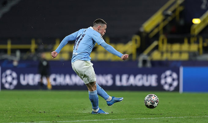 Từ quả phạt góc bên cánh phải, Mahrez không treo bổng vào trong mà chuyền cho Bernardo Silva. Tiền vệ người Bồ Đào Nha sau đó chuyền trả ngược cho Foden đứng ngoài vòng cấm và sau một nhịp khống chế, sao người Anh tung cú đá bằng chân trái tuyệt đẹp. Bóng đi căng, đập vào cột dọc bay thẳng vào lưới Dortmund. Một pha lập công xứng đáng được liệt vào hàng siêu phẩm của Foden.