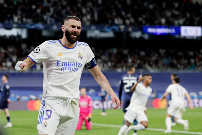 Phút 95 của hiệp phụ đầu tiên, Benzema bị Ruben Dias đốn ngã trong vòng cấm và trên chấm phạt đền, tiền đạo người Pháp đã không sai lầm nào đánh lừa Ederson nâng tỷ số lên 3-1 cho Real Madrid.