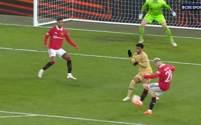 Trong lúc thế trận đang khởi sắc cho MU thì chính đội trưởng Bruno Fernandes lại trở thành tội đồ. Phút 16, anh kéo ngã Alejandro Balde trong vòng cấm và trọng tài ngay lập tức chỉ tay vào chấm phạt đền.