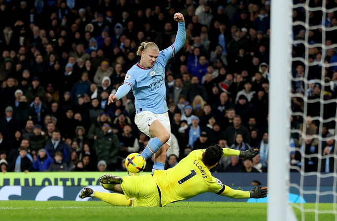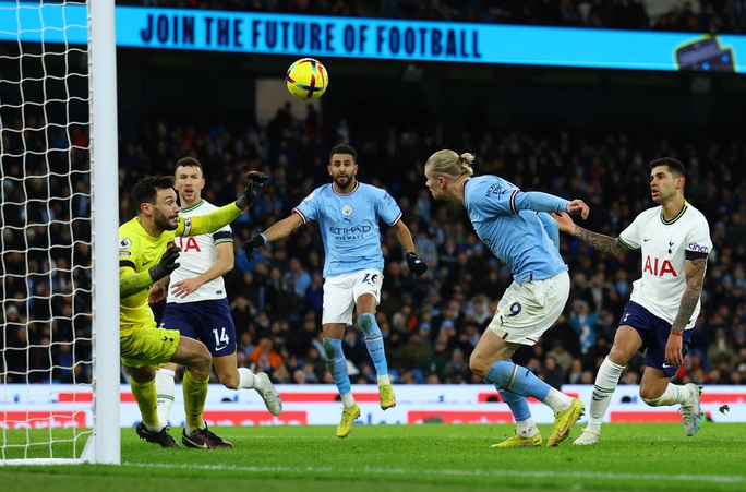 Cuộc chiến giữa "những người cùng khổ" diễn ra khá sôi động ngay sau tiếng còi khai cuộc. Erling Haaland, như thường lệ, vẫn là mối đe dọa đáng sợ nhất khi anh suýt có bàn mở tỉ số ở phút thứ 10 nếu Cristian Romero không kịp thời hỗ trợ thủ thành Hugo Lloris. Liên tiếp những pha hãm thành cực kỳ nguy hiểm được các chân sút Man City tạo ra sau đó, hết Julian Alvarez đến cầu thủ trẻ Rico Lewis làm thót tim các CĐV đội khách Tottenham.