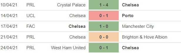 *5 trận gần nhất của Chelsea: