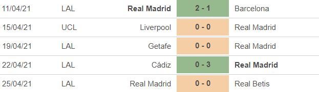 *5 trận gần nhất của Real Madrid:
