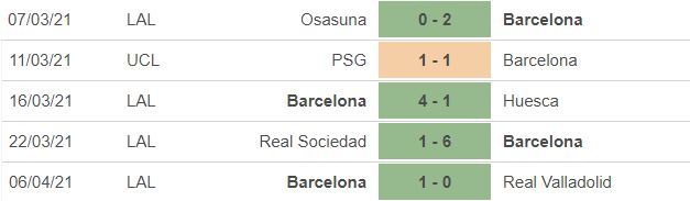 *5 trận gần nhất của Barca: