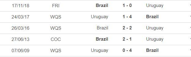 Kể từ 2007 đến nay, các trận đấu chính thức giữa Uruguay với Brazil luôn có từ ít nhất 3 bàn thắng (không tính giao hữu).