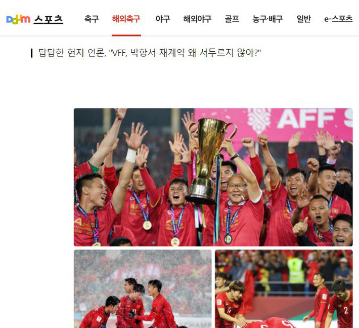 Ngày 20/10, website Sports.V.Daum của Hàn Quốc có bài viết nói về câu chuyện gia hạn hợp đồng của HLV Park Hang-seo với nhan đề: "Truyền thông địa phương không hài lòng, tại sao VFF không nhanh chóng gia hạn hợp đồng cho HLV Park Hang-seo?".