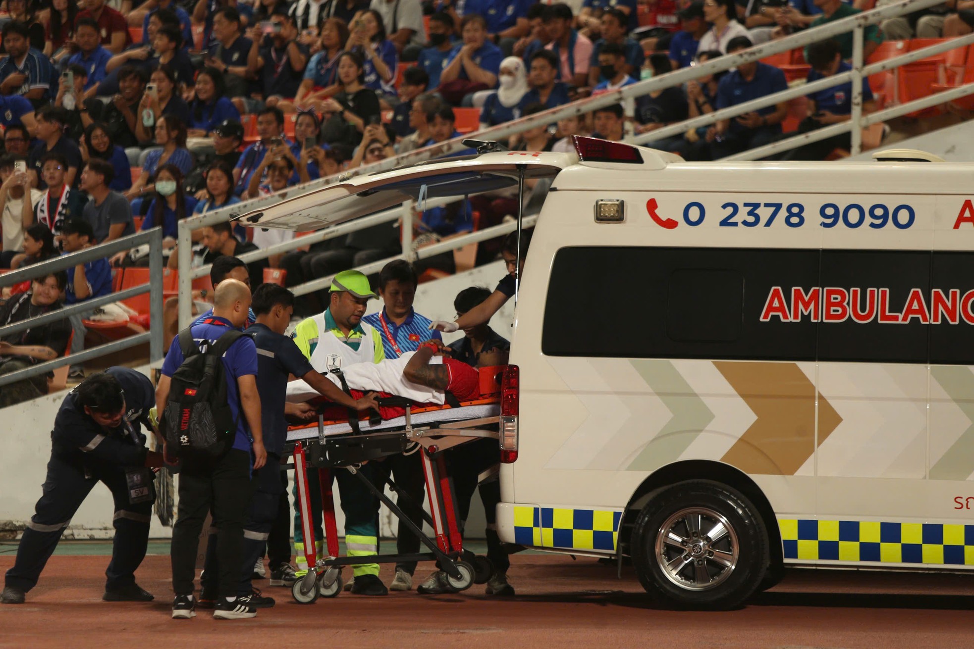 Thật không may, vận đen bỗng ập tới. Ngọc Tân, người luôn chơi chắc chắn, đột nhiên mắc sai lầm dẫn tới bàn thua phút 38. Và khi xui rủi đến, nó sẽ đến liên tiếp. Trong tình huống thoát xuống bên cánh phải, tác động của đối thủ khiến Xuân Son ngã xuống và gãy ống đồng. Những giọt nước mắt đau đớn của tiền đạo 27 tuổi khiến bất kỳ người hâm mộ bóng đá Việt Nam nào cũng đau lòng. Không mang dòng máu Việt nhưng anh đã chiến đấu và ngã xuống với tinh thần người Việt.