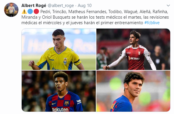 CLB đã thông báo tình hình đến BLĐ và các chuyên gia y tế. Tất cả những người đã tiếp xúc với trường hợp nhiễm COVID-19 đều phải xét nghiệm PCR và tiến hành các biện pháp cách ly cần thiết. 9 cầu thủ đã tập luyện cùng nhau lần này gồm: Pedri, Trincão, Matheus, Todibo, Wagué, Aleña, Rafinha, Miranda, Oriol Busquets.