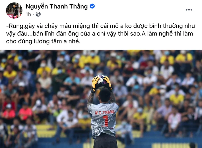 Tuy nhiên theo thông tin từ Tuổi trẻ, báo cáo của Ban điều hành giải cho biết sau khi trận đấu vừa kết thúc, thủ môn Nguyễn Thanh Thắng đã chạy lại và dùng đầu húc vào mặt trợ lý trọng tài Nguyễn Lê Nguyên Thành.