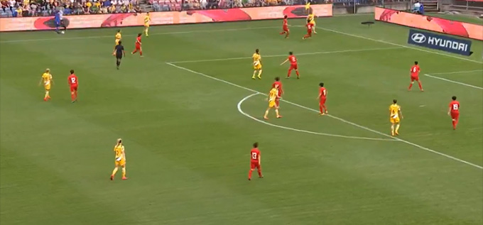 27': Với chiều cao vượt trội, nữ Australia đang sở dụng nhiều tình huống treo bóng bỏng để Kerr hay Foord ở phía trong tận dụng khả năng không chiến của mình.