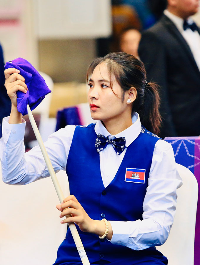 Ở trận ra quân tại vòng 1/8 nội dung carom 3 băng nữ diễn ra sáng ngày 8/5, Sruong Pheavy đã dễ dàng đánh bại nữ cơ thủ Phùng Kiện Tường của Việt Nam với tỷ số 25-10, chỉ sau 23 đường cơ.