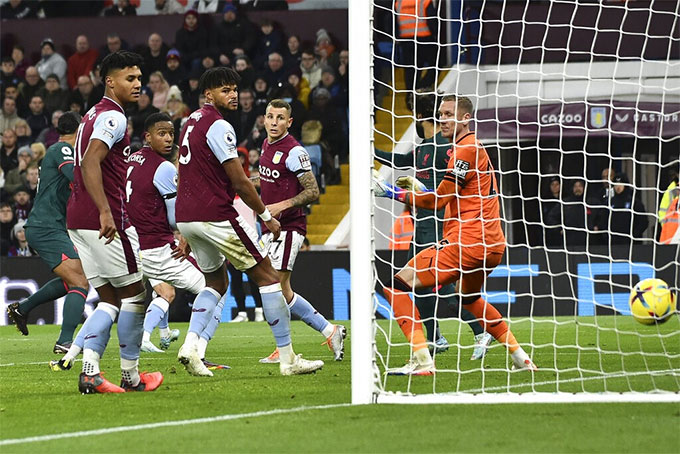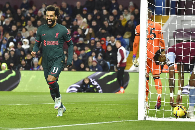 So với Nunez, cầu thủ còn lại trên hàng tấn công Liverpool là Salah thi đấu hiệu quả hơn nhiều. Phút 37, chính Salah đã chuyền ngược trở lại cho trung vệ Van Dijk tung cú đá chéo góc bằng chân trái đưa bóng đi qua một rừng chân trước khi làm tung lưới Aston Villa lần thứ 2.