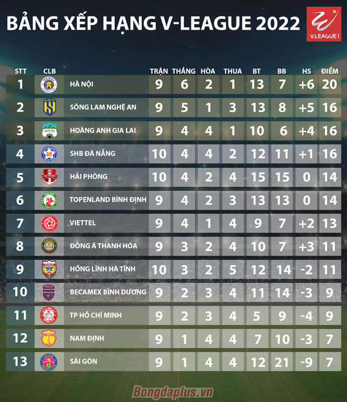 Đội bóng Thủ đô đã bảo vệ thành quả của mình với những điều chỉnh trên mặt trận phòng ngự. Đánh bại SLNA, Hà Nội FC tiếp tục dẫn đầu V.League với 20 điểm có được. Thầy trò HLV Chun Jae Ho hơn 4 điểm so với các đội đứng sau gồm SLNA, HAGL, SHB.ĐN (cùng được 16 điểm).