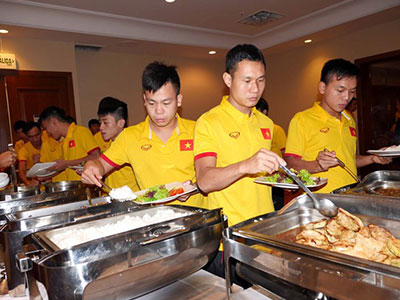 Từ 7/9, đầu bếp mà tuyển futsal Việt Nam mang theo đã được bố trí vào bếp của khách sạn để chế biến những món ăn hợp khẩu vị cho các cầu thủ, giúp họ yên tâm tập luyện.