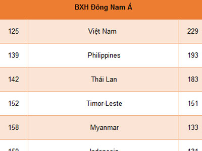 Theo bảng xếp hạng FIFA vừa công bố, đội tuyển Việt Nam đã vượt qua Philippines để lên số một Đông Nam Á, và bỏ xa Thái Lan đến 17 bậc.
