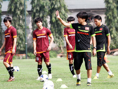 Trong buổi tập sáng nay (25/2), HLV Toshiya Miura yêu cầu các cầu thủ vận động liên tục trong hơn hai tiếng đồng hồ bất chấp thời tiết nắng nóng.