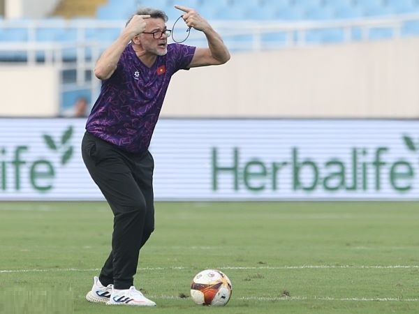 HLV Philippe Troussier nhiều lần to tiếng khi chỉ đạo đội tuyển Việt Nam ở buổi tập trên sân Mỹ Đình chiều 25/3, trước trận tiếp Indonesia ở vòng loại World Cup 2026.