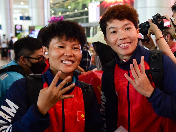 Chiều 16/5, Đội tuyển nữ Việt Nam với 11 thành viên ở khu vực phía Nam đã trở về trong nụ cười rạng ngời. Tại sân bay Tân Sơn Nhất (TP.HCM), “những cô gái vàng” của chúng ta được người hâm mộ cũng như giới truyền thông chào đón rất trang trọng.