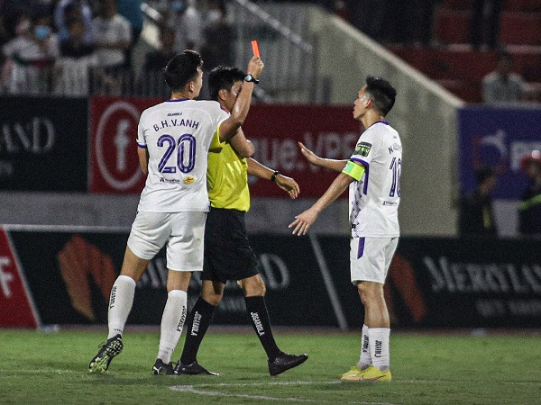 Kèm theo tấm thẻ đỏ sẽ là án phạt bổ sung từ phía LĐBĐ Việt Nam. Tối qua trong diễn biến trận đấu thuộc vòng 7 V-League, Nguyễn Văn Quyết đã phải nhận thẻ đỏ cho một hành vi bên ngoài đường pitch.