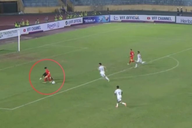 Tình huống diễn ra vào khoảng cuối hiệp hai, khi Văn Khang bứt tốc đầy ấn tượng bên hành lang cánh trái để đối mặt trực diện với thủ thành đối phương. Trong tư thế thuận lợi, đội trưởng U23 Việt Nam đứng trước hai lựa chọn: tự mình dứt điểm hoặc kiến tạo cho đồng đội Hoàng Hên đang ở vị trí không người kèm.